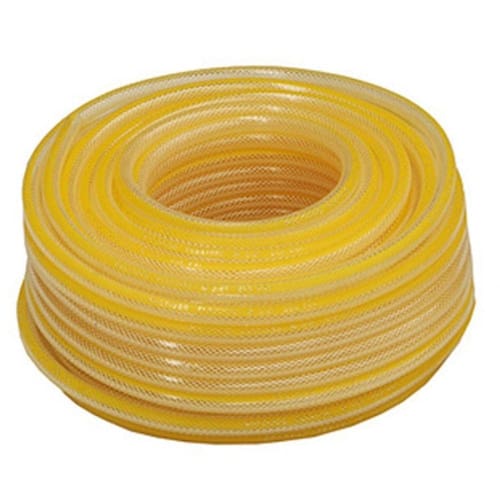 A mangueira CRISTAL 3/8 4 mm é indicada para transporte de ar, água ou fluidos. Normalmente usada na construção civil. Possuem três camadas, sendo a interna de pvc a intermediária poliéster e a externa pvc transparente com tarja amarela. Temperatura de uso entre - 10º C e 60º C codigo:7902 11 k 50 metros Ean: 7897270333067