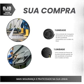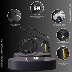 Pistola de Alta Pressão com Mangueira para Lavadora Descrição do Produto: Otimize a limpeza de sua casa, quintal, carro e muito mais com esta pistola de alta pressão de alta qualidade, compatível com diversas lavadoras Karcher. Este kit inclui uma pistola ergonômica e uma mangueira resistente, projetadas para oferecer desempenho e durabilidade excepcionais. Características: Alta Pressão: Projetada para suportar até 180 bar de pressão, garantindo uma limpeza eficiente e poderosa.Temperatura Máxima: Suporta -05 até 50C, permitindo a utilização de água quente para uma limpeza ainda mais eficaz.Ergonomia: A pistola possui um design ergonômico, proporcionando conforto durante o uso prolongado.Mangueira Resistente: Acompanha uma mangueira de alta qualidade, com conexão rápida para facilitar o manuseio e a instalação.Versatilidade: Perfeita para limpar carros, pátios, calçadas, paredes e muito mais.Especificações: Comprimento da Mangueira: 5 metrosPressão: 4 barTemperatura Máxima da Água: 50CMaterial: Plástico ABS de alta resistência e aço inoxidávelConteúdo da Embalagem: 1 Pistola de Alta Pressão1 Mangueira de 5 metrosVantagens: Durabilidade: Feita com materiais de alta qualidade para garantir uma longa vida útil.Facilidade de Uso: Instalação rápida e simples, compatível com diversos modelos de lavadoras.Desempenho Superior: Ideal para tarefas de limpeza pesada, oferecendo potência e eficiência.Garantia: Garantia de 3 meses contra defeitos de fabricação.Não perca a oportunidade de adquirir este kit completo para lavadoras e torne suas tarefas de limpeza muito mais fáceis e rápidas Marca: Bjb Equipamentos