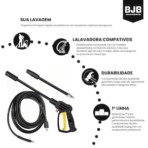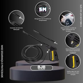 Ferramenta de aplicação de Alta Pressão com Mangueira para Lavadora Descrição do Produto: Otimize a limpeza de sua casa, quintal, carro e muito mais com esta Ferramenta de aplicação de alta pressão de alta qualidade, compatível com diversas lavadoras Karcher. Este kit inclui uma Ferramenta de aplicação ergonômica e uma mangueira resistente, projetadas para oferecer desempenho e durabilidade excepcionais. Características: Alta Pressão: Projetada para suportar até 180 bar , garantindo uma limpeza eficiente e poderosa.Temperatura Máxima: Suporta -05 até 50C, permitindo a utilização de água quente para uma limpeza ainda mais eficaz.Ergonomia: A Ferramenta de aplicação possui um design ergonômico, proporcionando conforto durante o uso prolongado.Mangueira Resistente: Acompanha uma mangueira de alta qualidade, com conexão rápida para facilitar o manuseio e a instalação.Versatilidade: Perfeita para limpar carros, pátios, calçadas, paredes e muito mais.Especificações: Comprimento da Mangueira: 5 metrosPressão: 4 barTemperatura Máxima da Água: 50CMaterial: Plástico ABS de alta resistência e aço inoxidávelConteúdo da Embalagem: 1 Ferramenta de aplicação de Alta Pressão1 Mangueira de 5 metrosVantagens: Durabilidade: Feita com materiais de alta qualidade para garantir uma longa vida útil.Facilidade de Uso: Instalação rápida e simples, compatível com diversos modelos de lavadoras.Desempenho Superior: Ideal para tarefas de limpeza pesada, oferecendo potência e eficiência.: de 3 meses contra defeitos de fabricação.Não perca a oportunidade de adquirir este kit completo para lavadoras e torne suas tarefas de limpeza muito mais fáceis e rápidas