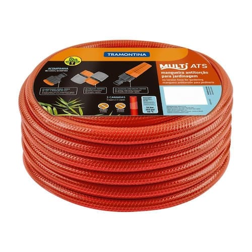 A mangueira antitorção Multi ATS 1/2" Tramontina laranja em PVC 3 camadas 25 m vai levar maior praticidade na hora de molhar suas plantas ou hortaliças. De uso fácil, prático e adequado para diversos tipos de atividades, ela possui 25 metros de extensão e conta com 3 camadas que garantem flexibilidade e um fluxo de água constante, pois não torce e nem dobra. Com a Tramontina, você tem os itens ideais para executar seu trabalho com muito mais eficácia!