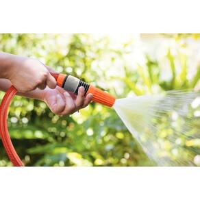 - O esguicho possui prático sistema de regulagem do fluxo d'água através do regulador frontal.