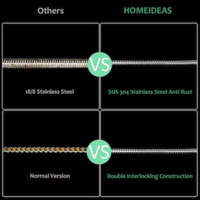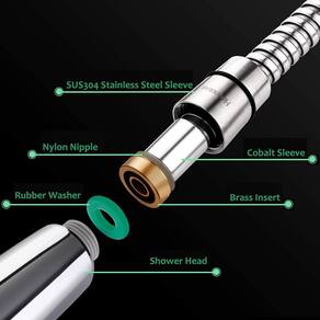 ESPECIFICAÇÕES - Material: aço inoxidável - Material da tubulação interna: EPDM reforçado - Material do conector: latão - Tamanho do conector: IPS de 1,27 cm, roscas retas - Acabamento: cromado Comprimento: 2 metros ou 79 polegadas O pacote inclui: Mangueira de chuveiro Compre da HOMEIDEAS Aço inoxidável de qualidade vs. aço de baixa qualidade, fácil de enferrujar EPDM grosso, não reciclado vs. Fino, reciclado Componente universal de chuveiro com conector IPS padrão de 1,27 cm se encaixa na maioria das mangueiras de chuveiro. Garantia de devolução do dinheiro em 30 dias - Exterior de aço inoxidável e à prova de ferrugem: o tubo exterior é feito de aço inoxidável 304 premium, construído para resistir à corrosão diária, arranhões e manchas, com 4 arruelas garantindo qualidade e longevidade. Dicas: As arruelas devem ser colocadas em ambas as extremidades da mangueira ao instalar. - Sem dobras e rotação de 360°: O novo design estrutural inovador anti-envoltório de 360 graus, tem uma boa conexão, pode ser livre para girar. Esta mangueira de chuveiro é leve, muito flexível e sem dobras. Torne fácil e para todos os chuveiros. - EPDM INNER : Tubo interno feito de material EPDM não tóxico, inodoro que pode ser utilizado em ambientes de alta pressão e alta temperatura, especialmente para chá de bebê. - Inserções de latão sólido: Ambos os conectores de interface são construídos a partir de inserções de latão. Ambas as interfaces são G1/2 que serve para G1/2, 1/2 NPT, interface 1/2 NPSC e chuveiro. - SERVIÇO: Qualquer problema, não hesite em entrar em contato conosco via Amazon, com você dentro de 24 horas todos os dias úteis.