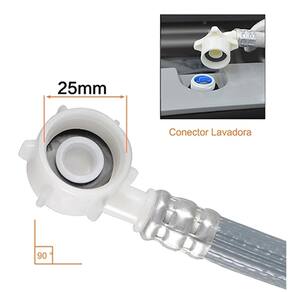 Manguera Entrada Lavadora Multimarcas de 3 metros de comprimento. Medidas: 3/4 codo x 3/4 reto. Curva de 90 graus. Tuerca de plástico Pvc. Largo: 3 metros. Inclui: 1 unidade. Interior de Hilo. Marcas compatíveis: Samsung, Lg, Mademsa, Fensa, Electrolux, Midea, Daewoo,