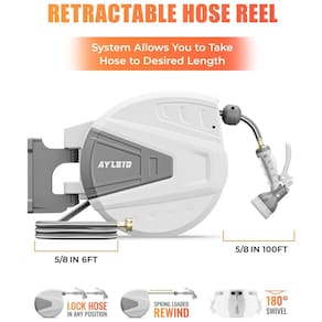 Bloqueio livre: Quando você puxa a mangueira no comprimento necessário, ela trava automaticamente na posição para evitar que a mangueira se retraia, eliminando comprimento extra que poderia causar dobras e emaranhados, proporcionando maior conveniência durante o uso da água.