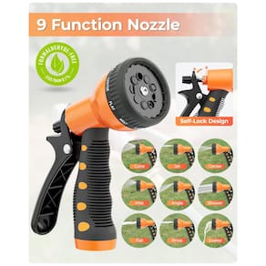 Bocal de 9 padrões: O bocal de 9 padrões oferece diferentes opções de pulverização, incluindo chuveiro, centro, plano, imersão, névoa, jato, triângulo, enxágue e cone. Isso atende às diversas necessidades de irrigação dos clientes, oferecendo versatilidade no uso.