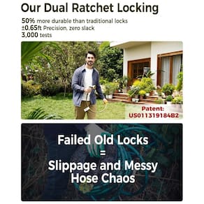 A mangueira de jardim retrátil GLAHODEN adota um sistema de retorno lento de bloqueio patenteado atualizado de qualquer comprimento, atualizando a estrutura de separação tradicional para uma estrutura integrada mais confiável, estendendo sua vida útil em 30, tornando a mais estável, não afrouxando ou caindo e mais durável.