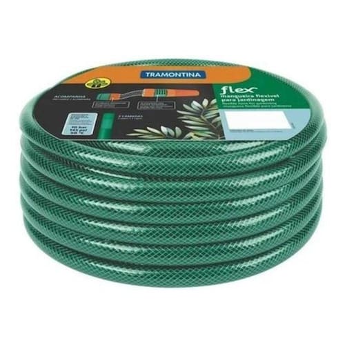 Para irrigar nosso jardim é preciso usar mangueiras de qualidade. Com a mangueira flex Tramontina verde em PVC 3 camadas 30 m será mais prático atingir os pontos mais difíceis na hora de cuidar o jardim ou a horta. Devido a flexibilidade do material que é produzida, a ferramenta apresenta revestimento de três camadas, sendo que a camada em poliéster evita que a mangueira torça e danifique produto. Qualidade e resistência é com a Tramontina!