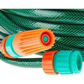 - Mangueira flexível e de fácil manuseio. - Possui 30 metros de comprimento. - Recomendada para situações de uso com pressão da água de até 10 bar [145 psi] e temperatura de 50 °C. - Para maior resistência possui 3 camadas distintas: interna em PVC, intermediária em fio de poliéster trançado e externa em PVC. - Referência: 79172300