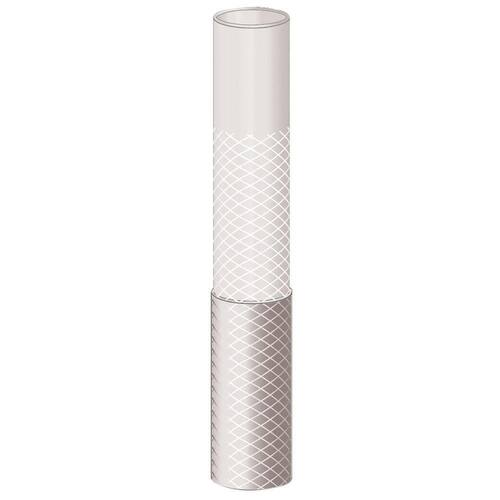 - Mangueira flexível e de fácil manuseio. - Possui 100 metros de comprimento. - Recomendada para situações de uso com pressão da água de até 10 bar [145 psi] e temperatura de 50 C. - Para maior resistência possui 3 camadas distintas: interna em PVC, intermediária em fio de poliéster trançado e externa em PVC.