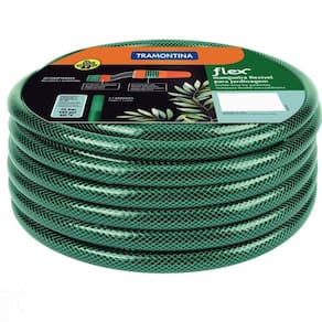 Cuide do seu jardim com a mangueira flex Tramontina verde em PVC 3 camadas 20 m com engate rosqueado e esguicho. Perfeita para as tarefas ao ar livre, ela torna a jardinagem mais prazerosa e confortável. O material em PVC da mangueira garante resistência e alta flexibilidade, possibilitando atingir os pontos mais difíceis na hora de irrigar. Possui 20 metros de comprimentos e acompanha um esguicho com jato regulável e um adaptador com engate rosqueado. Tramontina sempre pensando no melhor para seu dia a dia! Orientações - Mangueira flexível e de fácil manuseio.- Possui 20 metros de comprimento.- Recomendada para situações de uso com pressão da água de até 10 bar [145 psi] e temperatura de 50 °C.- Para maior resistência possui 3 camadas distintas: interna em PVC, intermediária em fio de poliéster trançado e externa em PVC.- Acompanha 01 esguicho com jato regulável e 01 adaptador com engate rosqueado.- O esguicho possui prático sistema de regulagem do fluxo d'água através do regulador frontal.- O esguicho é conectado em mangueiras através de sistema de fixação rosqueado. Características Gerais EAN13 7891117047865 DUN14 17891117047862 NCM 3917.39.00 Peso Líquido 2,5790 kg. Peso Bruto 2,6940 kg. Metragem 0,010935 m³. Dimensões Embalagem (Compr. X Larg. X Alt.) 270x 270x 150 mm. Dimensões Produto (Compr. X Larg. X Alt.) 270x 270x 150 mm. Cor 1 008000 Hexa Observações - A mangueira é recomendada para uso doméstico ou profissional na jardinagem, em situações com pressão da água de até 10 bar [145 psi].- Para aumentar a durabilidade da mangueira, não deixá-la exposta ao sol após o uso.- A temperatura máxima de trabalho da água deve ser 50 °C.- Use o enrolador de mangueira Tramontina para guardar a mangueira.- Para descarte dos produtos e embalagens siga as orientações de reciclagem vigentes.