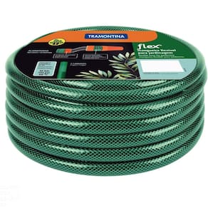 Seu jardim vai ficar muito mais bonito com a mangueira flex Tramontina verde em PVC 3 camadas 30 m com engate rosqueado e esguicho. Perfeita para auxiliar nos cuidados ao ar livre, ela possibilita alcançar os lugares mais difíceis na hora de irrigar. Com comprimento de 30 metros, ela é eficiente e garante alta flexibilidade e resistência, devido ao PVC presente em sua composição. Acompanha um esguicho com jato regulável e um adaptador com engate rosqueado. É um produto que leva conforto e bem-estar para as tarefas do dia-a-dia. Orientações - Mangueira flexível e de fácil manuseio.- Possui 30 metros de comprimento.- Recomendada para situações de uso com pressão da água de até 10 bar [145 psi] e temperatura de 50 °C.- Para maior resistência possui 3 camadas distintas: interna em PVC, intermediária em fio de poliéster trançado e externa em PVC.- Acompanha 01 esguicho com jato regulável e 01 adaptador com engate rosqueado.- O esguicho possui prático sistema de regulagem do fluxo d'água através do regulador frontal.- O esguicho é conectado em mangueiras através de sistema de fixação rosqueado. Características Gerais EAN13 7891117047889 DUN14 17891117047886 NCM 3917.39.00 Peso Líquido 3,8240 kg. Peso Bruto 3,9800 kg. Metragem 0,014420 m³. Dimensões Embalagem (Compr. X Larg. X Alt.) 305x 305x 155 mm. Dimensões Produto (Compr. X Larg. X Alt.) 305x 305x 155 mm. Cor 1 008000 Hexa Observações - A mangueira é recomendada para uso doméstico ou profissional na jardinagem, em situações com pressão da água de até 10 bar [145 psi].- Para aumentar a durabilidade da mangueira, não deixá-la exposta ao sol após o uso.- A temperatura máxima de trabalho da água deve ser 50 °C.- Use o enrolador de mangueira Tramontina para guardar a mangueira.- Para descarte dos produtos e embalagens siga as orientações de reciclagem vigentes.