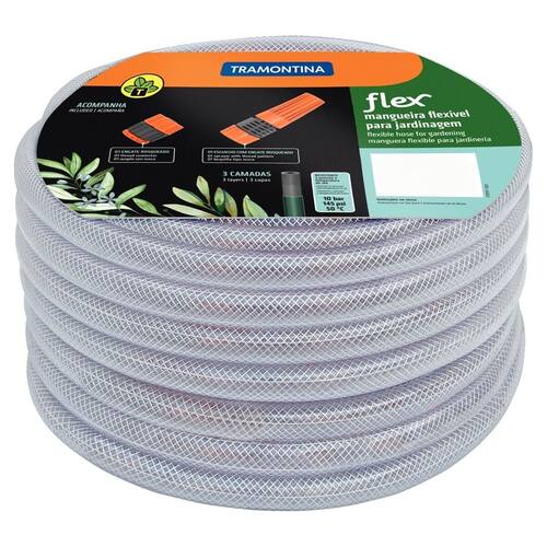 Cuidar do jardim tem que ser uma atividade prazerosa. Por isso, nada como ter uma mangueira totalmente adequada e resistente. A mangueira Flex da Tramontina agrega eficiência e qualidade ao seu trabalho e facilita a sua vida no dia a dia. Produzida com material resistente de alta flexibilidade, a mangueira possibilitará atingir os pontos mais difíceis na hora de irrigar o seu jardim.