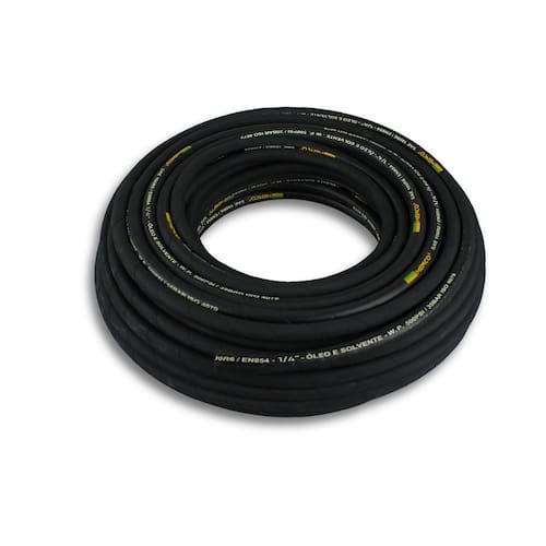 A Mangueira R6 Hidráulica 1/4 Pol Óleo Graxa Combustível 20Mt da Menco é um produto de alta qualidade e resistência, desenvolvido de acordo com as normas e padrões internacionais de fabricação. Com um composto especial 100% de borracha sintética resistente à abrasão, ozônio, intempéries e óleos minerais, essa mangueira é ideal para uso em linhas de retorno para circuitos óleo-dinâmicos de baixa pressão. Com um diâmetro de 1/4 polegada, essa mangueira possui um reforço de nylon que proporciona um excelente desempenho nas suas necessidades, garantindo alta resistência e durabilidade. Ela é indicada para uso com óleos solventes, óleos minerais, vegetais, óleos solúveis em água, derivados de petróleo, óleos sintéticos, óleos de emulsão aquosa, água, combustível diesel, graxa, entre outros. A Mangueira R6 Hidráulica Menco suporta uma pressão de trabalho de 500 psi 34,47 bar e possui um comprimento de 20 metros. Sua cor é preta, o que a torna discreta e fácil de combinar com qualquer ambiente. Além disso, ela conta com a do fabricante de 3 meses, proporcionando maior segurança e tranquilidade para o consumidor. Com essa mangueira, você terá um produto de qualidade, resistente e durável, perfeito para atender às demandas frequentes do seu dia a dia. Seja para ou doméstico, a Mangueira R6 Hidráulica 1/4 Pol Óleo Graxa Combustível 20Mt da Menco é a escolha ideal. Não perca tempo e adquira já a sua Mangueira R6 Hidráulica 1/4 Pol Óleo Graxa Combustível 20Mt da Menco. Garanta qualidade e eficiência em suas atividades!