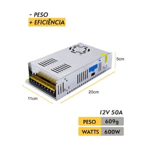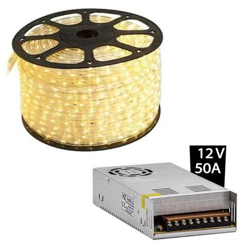 Informações Técnicas: - Fonte 12V Chaveada 50A (Incluso) - Tensão: 12V - Lúmen 160/MT ou >> 800LM em 1MT - Vida Útil: 50.000 h - Temperatura de Trabalho: -20 a 50°C - Cor: BRANCA FRIA - Voltagem: 110V - Modelo SMD: 5050 - Resistência a Água: Sim (IP65) - Comprimento: 100 m - Material: Silicone