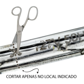 - Para cortar é bem simples, corte apenas onde tem o simbolo de uma tesoura e depois ligue ao conector de tomada na mangueira e conecte a rede elétrica para fazer a sua decoração.