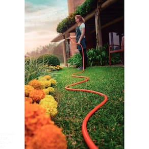 Você vai ganhar um ajudante especial para os cuidados com o jardim. Com A mangueira Multi 1/2" Tramontina laranja em PVC 3 camadas 10 m com engates rápidos e esguicho a manutenção de hortas e plantas vai ficar mais prazerosa e confortável. Produzida em PVC, material que garante resistência e alta flexibilidade, é perfeita para atingir os pontos mais difíceis na hora de irrigar o jardim. Acompanha um esguicho com jato regulável, dois engates rápidos e um adaptador fêmea com rosca de 3/4 polegadas e redução de 1/2 polegadas. É um produto prático e perfeito para as tarefas ao ar livre. Tem 10 metros de comprimento e vem na cor laranja. Orientações - Mangueira com alta flexibilidade e fácil manuseio.- Possui 10 metros de comprimento.- Recomendada para situações de uso com pressão da água de até 12 bar [174 psi] e temperatura de 50 °C.- Para maior resistência possui 3 camadas distintas: interna em PVC, intermediária em fio de poliéster trançado e externa em PVC.- Acompanha 01 esguicho com jato regulável, 02 engates rápidos e 01 adaptador fêmea com rosca de 3/4" e redução de 1/2".- O esguicho possui prático sistema de regulagem do fluxo d'água através do regulador frontal.- O esguicho é conectado em mangueiras de 1/2", 5/8" e 3/4" através de sistema de engate rápido. Características Gerais EAN13 7891117047988 DUN14 17891117047985 NCM 3917.39.00 Peso Líquido 1,7020 kg. Peso Bruto 1,7720 kg. Metragem 0,006563 m³. Dimensões Embalagem (Compr. X Larg. X Alt.) 250x 250x 105 mm. Dimensões Produto (Compr. X Larg. X Alt.) 250x 250x 105 mm. Cor 1 FFA500 Hexa Observações - A mangueira é recomendada para uso doméstico ou profissional na jardinagem, em situações com pressão da água de até 12 bar [174 psi].- Para aumentar a durabilidade da mangueira, não deixá-la exposta ao sol após o uso.- A temperatura máxima de trabalho da água deve ser 50 °C.- Use o enrolador de mangueira Tramontina para guardar a mangueira.- Para descarte dos produtos e embalagens siga as orientações de reciclagem vigentes.
