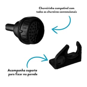 Ela conta com suporte de parede, chuveirinho que controla a saída de água podendo ser removido.