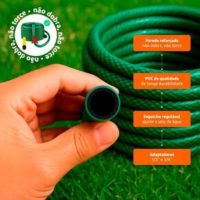 A Mangueira de Jardim 1/2 UNIFIOS foi desenvolvida para oferecer praticidade, resistência e eficiência em todas as tarefas de irrigação. Fabricada em PVC de alta qualidade, sua parede reforçada impede dobras e torções, garantindo fluxo de água contínuo e uniforme mesmo durante o uso prolongado. Com cor verde e diâmetro de 1/2, proporciona leveza no manuseio e excelente desempenho em regas diárias. Acompanha esguicho regulável, permitindo ajustar o jato conforme a necessidade, além de adaptador compatível com torneiras de 1/2 e 3/4, ampliando sua versatilidade no jardim. Ideal para quintais, áreas externas e cuidados paisagísticos, é a solução prática e confiável para quem deseja eficiência sem complicações. Sua construção durável oferece longa vida útil, tornando o trabalho de jardinagem mais simples e confortável.