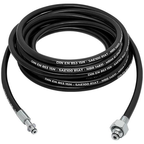 Mangueira de Alta Pressão para Lavadoras, com trama interna em aço, recoberta com borracha sintética, altamente resistente e flexível com conectores resistentes a oxidação. Pronta para uso.