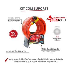 O Kit Mangueira Trançada Jardim Extra Forte Durín é o conjunto completo para suas necessidades de jardinagem e irrigação. Com uma mangueira de alta performance que suporta incríveis 20 kgf/cm², este kit de 15 metros oferece a resistência trançada de 3 camadas, ultra flexibilidade e, o melhor, já acompanha Suporte Fixo e Esguicho para uso imediato!