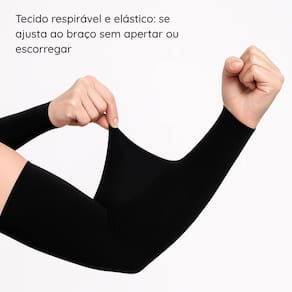 Conforto e ajuste ideal: Feito com tecido elástico, leve e respirável, o manguito se adapta a diferentes formatos de braço. Possui elásticos nas extremidades e entrada para os dedos, o que evita que a peça escorregue durante o uso.