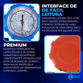 Manifold Premium Gás R22 R32 R134a e R410A com Mangueiras e Adaptadores MPH-332 Hiatsu