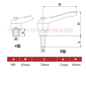 Manipulo Alavanca de Aperto Rapido com Trava Ajustável de rosca externa M8 X 20mm Kit com 3 peças