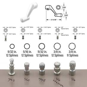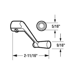 - DIMENSÕES — As peças de reposição da janela de manivela apresentam um fuso de 5/16 polegadas e um alcance de 2-11/16 polegadas; para obter mais informações dimensionais, consulte o desenho da linha (não universal)