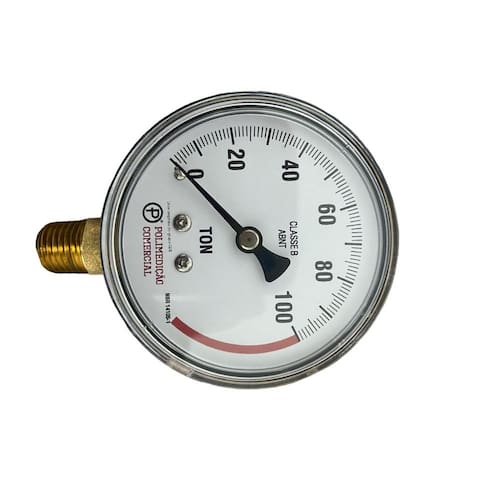 O Manômetro para Prensa ou Guincho de 100 toneladas com rosca 1/4" NPT é um instrumento de medição analógico robusto e preciso, projetado para monitoramento de pressão em sistemas hidráulicos de alta capacidade. Ideal para aplicações industriais pesadas, como prensas hidráulicas e guinchos, este manômetro permite a leitura confiável da pressão exercida durante a operação, garantindo segurança e controle no processo.