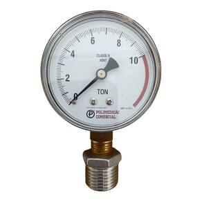 Manômetro para Prensa Hidráulica 10 Toneladas 1/4" NPT + Bucha Redutora 1/2" NPT para 1/4" NPT