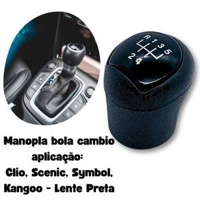 Manopla Bola Cambio Clio Scenic Symbol Kangoo - Lente Preta Manopla Câmbio preta Renault Clio Scenic Symbol Kangoo