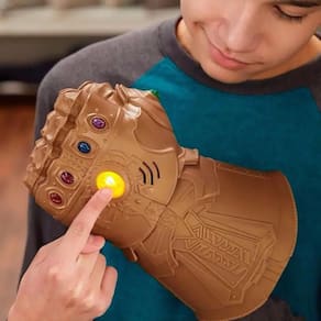 Inspirado na Manopla do Infinito do Thanos. As crianças podem se sentir o vilão mais poderoso do Universo da Marvel e controlar o destino da galáxia. Possui efeitos sonoros e luminosos (requer pilhas, já inclusas) que irão garantir a diversão da criançada!