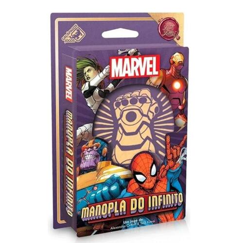 Prepare-se para batalhar pelo destino do universo, desafiando seus amigos num jogo de cartas que exige riscos e um excelente poder de dedução. Em Manopla do Infinito: Um jogo Love Letter, 1 jogador é o Titã Louco Thanos, que está tentando reunir as 6 Joias do Infinito e usá-las para ganhar o poder supremo.