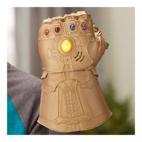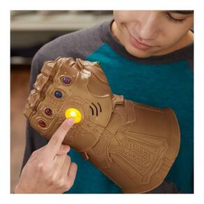 Thanos quer assumir o controle total da galáxia e para isso precisa encontrar as Jóias do Infinito e armazená-las em sua impressionante e dourada manopla. As crianças podem imaginar invocar o poder das jóias do infinito e controlar o destino da galáxia com a manopla eletrônica (com luzes e sons)! Empurre o botão central da manopla para acender a jóia central e ativar o poderoso som! Esse brinquedo é inspirado no filme Vingadores: Guerra Infinita e foi projetado para se encaixar na maioria dos tamanhos de mãos infantis.
