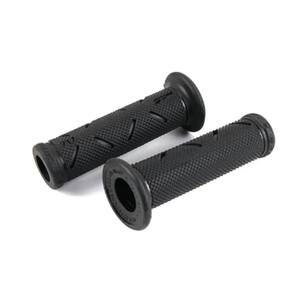 MANOPLAS PROGRIP SUPERBIKE PRETA COMPOSTO RIGIDO DURO (padrão de competição)   As manoplas Pro Grip 717 rigidas são fabricadas com material de dupla densidade, proporcionando ótima aderência (mesmo na chuva) e conforto superior.     Características principais: - Produto Italiano - Material: Borracha (COMPOSTO DURO - PARTE EXTERNA / Composto macio - parte interna) - Dimensões: 125 mm (comprimento), 30 mm (diâmetro externo) - Compatível com guidões de 22mm (diâmetro) - Manoplas vazadas para instalação dos pesos de guidão - Sulcos laterais para travamento com arame nao incluso (padrão de competição) - Vendido em pares   Itens inclusos: -01 par de manoplas    Codigo do produto: 1x PROGRIP-BLACK