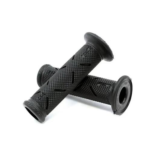 MANOPLAS PROGRIP SUPERBIKE PRETA COMPOSTO RIGIDO DURO (padrão de competição) As manoplas Pro Grip 717 rigidas são fabricadas com material de dupla densidade, proporcionando ótima aderência (mesmo na chuva) e conforto superior. Características principais: - Produto Italiano - Material: Borracha (COMPOSTO DURO - PARTE EXTERNA / Composto macio - parte interna) - Dimensões: 125 mm (comprimento), 30 mm (diâmetro externo) - Compatível com guidões de 22mm (diâmetro) - Manoplas vazadas para instalação dos pesos de guidão - Sulcos laterais para travamento com arame nao incluso (padrão de competição) - Vendido em pares Itens inclusos: -01 par de manoplas Codigo do produto: 1x PROGRIP-BLACK Ean: 7896484562997