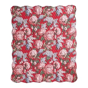 Cobertor acolchoado Benjara Milz 50x60, algodão, poliéster, estampa floral, vermelho, rosa, verde e azul
