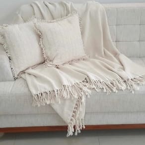 Esta manta é um adereço maravilhoso para seu ambiente!Medindo 2,20m x 1,50m feita com 100% de algodão, acabamento com nós nas franjas para não desfiar assim garantindo sua durabilidade e design exclusivo. Manta leve perfeita para sofás, poltronas e pode ser usada como colcha de cama!A manta é feita para você que gosta de inovar a decoração de seu ambiente com ótimo custo benefício, um produto que vale muito a pena! Deixe sua casa mais aconchegante.A manta é um acessório perfeito para decorar, renovar e proteger o visual do sofá ou poltrona. Isso sem contar que ela torna os dias frios mais aconchegantes. Também utilizada como peseira, a manta ajuda na criação de composições incríveis. Feita com material de qualidade, ela tem boa resistência. Acabamento em franjas.Especificações :-Mede 2,20 x 1,50m-100% algodão-Franjas com nozinhos para não desfiar-Não solta tinta-Não desbota e não manchaInstruções de lavagem: a manta pode ser lavada na máquina separadamente, utilizar sabão neutro e o ciclo de roupas delicadas. Não colocar alvejante, apenas amaciante. Não deixar de molho, nem usar agua quente. Evite a exposição contínua ao sol. Após o ciclo da máquina, estender imediatamente! produto delicado. A durabilidade da manta depende de cuidados durante a manutenção. É recomendada secagem natural. Na hora de passar, utilize ferro morno (150 °C). Não limpe a seco e não utilize produtos para remover manchas. Pode haver alteração de até 5% no tamanho total após lavagem.