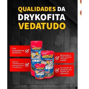A Fita Vedatudo Alumínio 45cm da DRYKO é uma solução autoadesiva multiuso à base de asfalto com poliméricos, protegida com filme de alumínio. Desenvolvida para exposição a intempéries e raios solares, a fita é ideal para solucionar problemas de gotejamento e vedação em diversas aplicações.