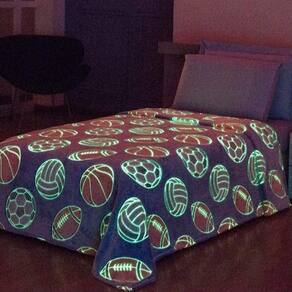 Manta Cobertor Solteiro Infantil Brilha No Escuro Macia - Azul