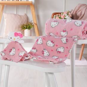 Encante seu bebê com conforto e estilo com a Manta com Naninha Coral Fleece Turma da Hello Kitty 75x100cm!