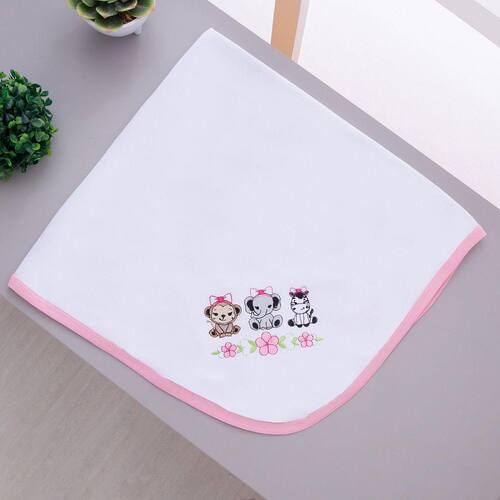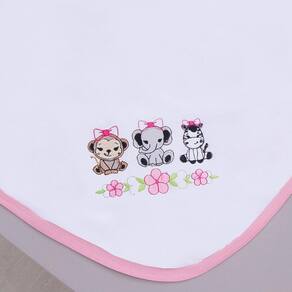 Manta Cueiro Malha 100% Algodão Para Bebê Safari Branco Com Rosa