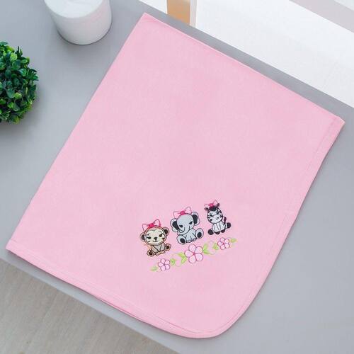 Manta Cueiro Malha 100% Algodão Para Bebê Safari Rosa