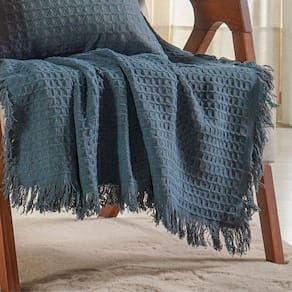 Manta Decorativa Para Sofá Waffle 100% Algodão 160x220cm Azul Cobalt