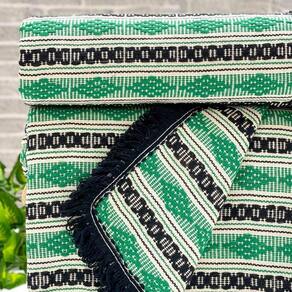 Manta Diamante Super King 100% Algodão 260x250 Listra Verde Com Franja Preta