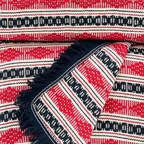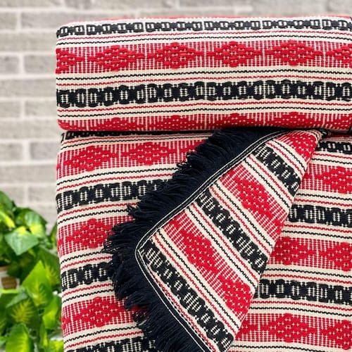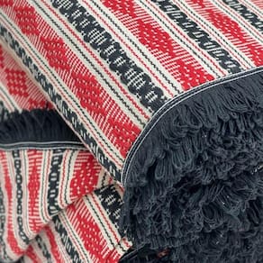 Manta Diamante Super King 100% Algodão 260x250 Listra Vermelho Com Franja Preta