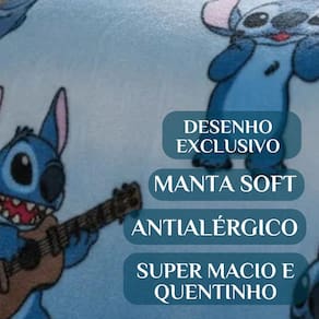 Manta Infantil Stitch Super Fofinha Quentinha Antialérgica Cor: STITCH Deixe o descanso do seu pequeno mais aconchegante, divertido e protegido com a manta Stitch Transforme o descanso do seu pequeno em um momento de conforto, diversão e proteção com a Manta Infantil Stitch. Uma peça fofinha, quentinha e cheia de carinho que vai além de aquecer: ela traz segurança antialérgica e muito mais aconchego para o dia a dia. Seu filho a vai se apaixonar por essa manta com o personagem mais querido da Disney. Imagine ver o sorriso no rostinho dele a ao se enrolar em uma manta super macia, quentinha e feita para proteger. É como dar um abraço carinhoso todos os dias, seja na hora do soninho, da TV ou até mesmo em viagens. Além de linda e divertida, ela transmite tranquilidade e bem-estar para as crianças, enquanto os pais ganham a certeza de oferecer o melhor em cuidado e qualidade. Garanta agora a Manta Infantil Stitch e transforme os momentos de descanso em pura alegria e aconchego. Contém 1 peça 01 Cobertor 2,20m x 1,50m Composição: Manta Soft 1. A manta é realmente antialérgica Sim O tecido foi desenvolvido para ser hipoalergênico, protegendo a pele delicada das crianças. 2. Pode ser Utilizado em quais situações Perfeita para o berço, cama, sofá, viagens ou até para brincar e assistir TV. 3. A manta é pesada Não, ela é grossa e quentinha, mas leve o suficiente para oferecer conforto sem incomodar. 4. Pode ser lavada na máquina Sim, é prática e resistente, pode ser lavada na máquina sem perder maciez. 5. Qual o tamanho da manta Ela foi feita no tamanho ideal para crianças, oferecendo liberdade e aconchego. Não perca Garanta agora a Manta Infantil Stitch Super Fofinha e Antialérgica e proporcione noites tranquilas e cheias de carinho para quem você mais ama. Marca: Não Informado