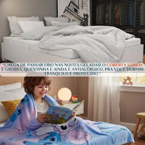 Manta infantil stitch super fofinha quentinha antialérgica Cor: stitch angel Deixe o descanso do seu pequeno mais aconchegante, divertido e protegido com a manta stitch Transforme o descanso do seu pequeno em um momento de conforto, diversão e proteção com a manta infantil stitch. Uma peça fofinha, quentinha e cheia de carinho que vai além de aquecer: ela traz segurança antialérgica e muito mais aconchego para o dia a dia. Seu filho a vai se apaixonar por essa manta com o personagem mais querido da disney. Imagine ver o sorriso no rostinho dele a ao se enrolar em uma manta super macia, quentinha e feita para proteger. É como dar um abraço carinhoso todos os dias, seja na hora do soninho, da tv ou até mesmo em viagens. Além de linda e divertida, ela transmite tranquilidade e bem-estar para as crianças, enquanto os pais ganham a certeza de oferecer o melhor em cuidado e qualidade. Garanta agora a manta infantil stitch e transforme os momentos de descanso em pura alegria e aconchego. Contém 1 peça 01 cobertor 2,20m x 1,50m Composição: Manta soft 1. A manta é realmente antialérgica Sim o tecido foi desenvolvido para ser hipoalergênico, protegendo a pele delicada das crianças. 2. Pode ser Utilizado em quais situações Perfeita para o berço, cama, sofá, viagens ou até para brincar e assistir tv. 3. A manta é pesada Não, ela é grossa e quentinha, mas leve o suficiente para oferecer conforto sem incomodar. 4. Pode ser lavada na máquina Sim, é prática e resistente, pode ser lavada na máquina sem perder maciez. 5. Qual o tamanho da manta Ela foi feita no tamanho ideal para crianças, oferecendo liberdade e aconchego. Não perca garanta agora a manta infantil stitch super fofinha e antialérgica e proporcione noites tranquilas e cheias de carinho para quem você mais ama. Marca: Não Informado