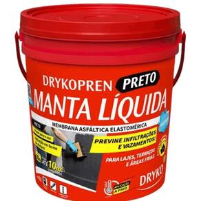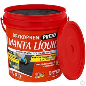 A Manta Líquida Asfáltica DRYKOPREN PRETO 3,6L DRYKO é uma solução eficiente e prática para quem busca alta impermeabilização em diferentes tipos de estruturas. Desenvolvida com emulsão asfáltica composta de asfaltos especiais, carga mineral e resina elastomérica diluída em água, esta manta líquida se destaca pelo seu alto teor de sólidos, o que garante cobertura uniforme com poucas demãos. O resultado é uma membrana flexível, resistente e com excelente desempenho na proteção contra infiltrações.