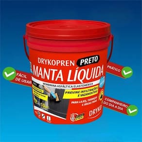Público-alvoA Manta Líquida DRYKOPREN é indicada tanto para profissionais da construção civil, como engenheiros, arquitetos e empreiteiros, quanto para consumidores finais que buscam soluções confiáveis em impermeabilização. É uma excelente opção para quem deseja prevenir infiltrações em imóveis novos ou realizar manutenções em estruturas já existentes.